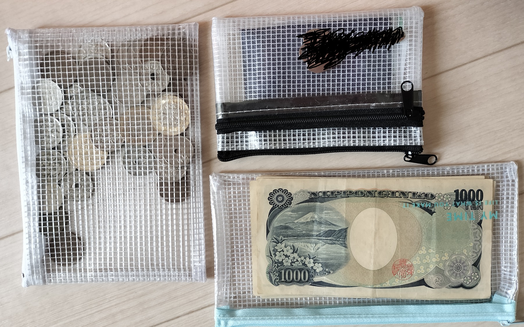 貴重品いれと、釣銭収納用のビニールケースを合わせて三つを用意した。どれもなくしてはならない貴重品なので、中身が見れる透明ケースに入れて持ち歩くしかない