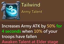 風の精霊は自軍の損失が10%に達した時、一番数が多い敵部隊を8秒間気絶させる。例えば相手が騎兵単の場合、騎兵の1/4の兵士を気絶させる。騎兵のすべてが対象はなく、騎兵の四つある分隊の、一分隊のみを気絶